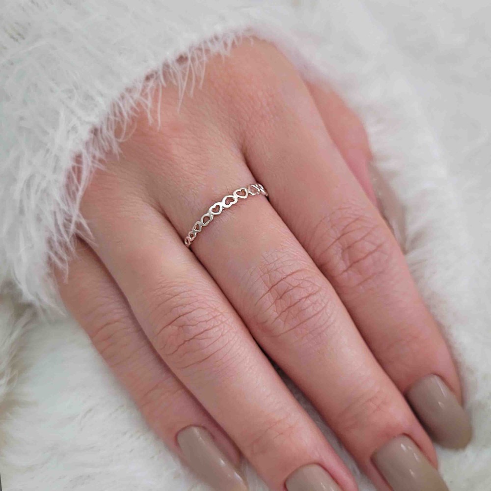 Anel Com Corações Vazados - Prata 925